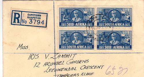 SA REG COVER 1941: 3d WOMAN'S SERVICES BLOCK OF 4