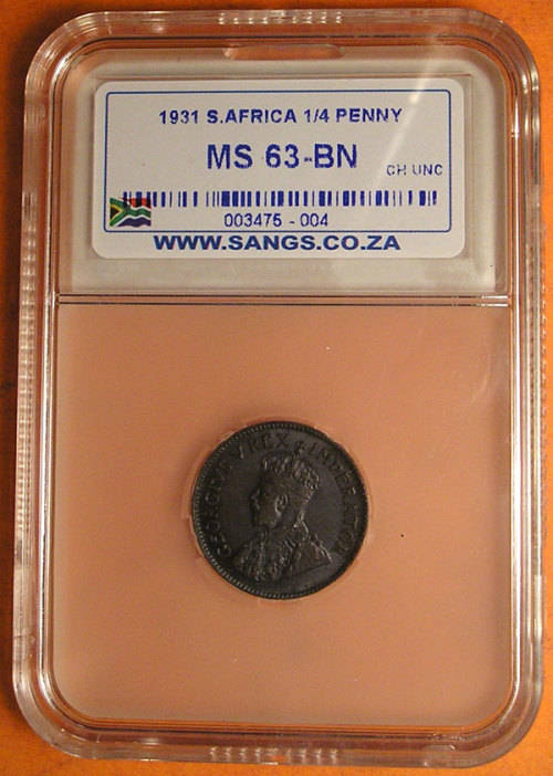 SA Union: 1931 King George V 1/4 Penny (Farthing)* SUID ** SANGS MS 63-BN *
