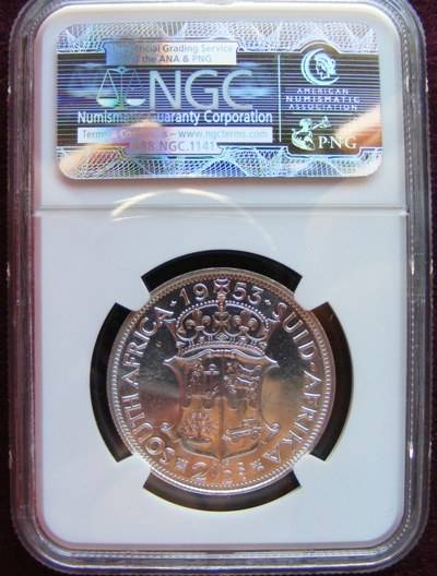 SA UNION 1953 PF 66 SILVER  HALF CROWN  NGC GRADED