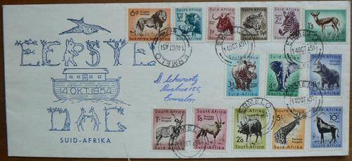 SA Union 1954 pictorial FDC full set of 14 stamps rare Afrikaans version