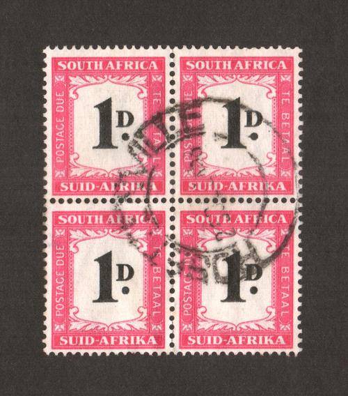SA Union 1d hyphenated 1950-1958, block of 4, - Rosettenville cancellation