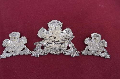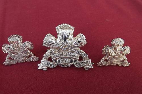 SAAC Cap Badge "Eendrag Maak Mag" with 2 small collar badges