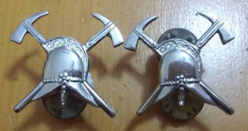 SAAF - 2 X FIREMANS COLLAR BADGES (SAME DIRECTION) - PINS INTACT