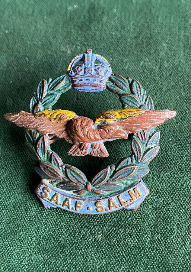 SAAF CAP BADGE-WORN 1926-1959- 2 LUGS SAAF CAP BADGE-WORN 1926-1959- 2 LUGS SAAF CAP BADGE-WORN 1926-1959- 2 LUGS