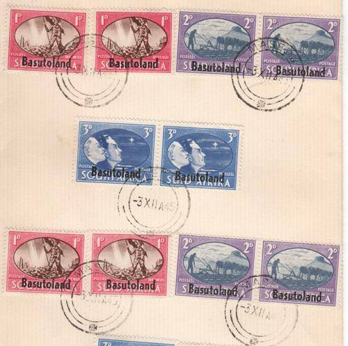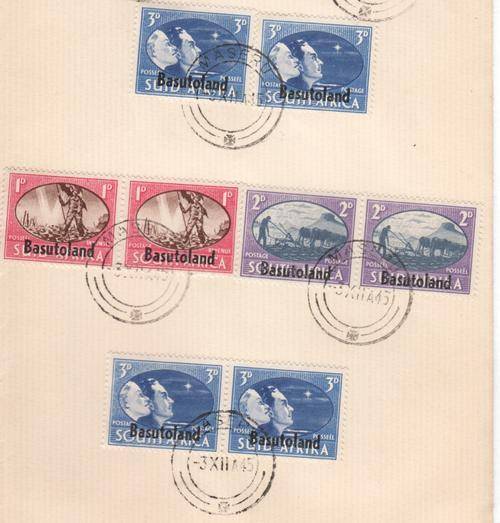 SACC 29-31 Basutoland - pairs of 1945 on cover 3 sets - 1 set with barbed wire variety - as per scan
