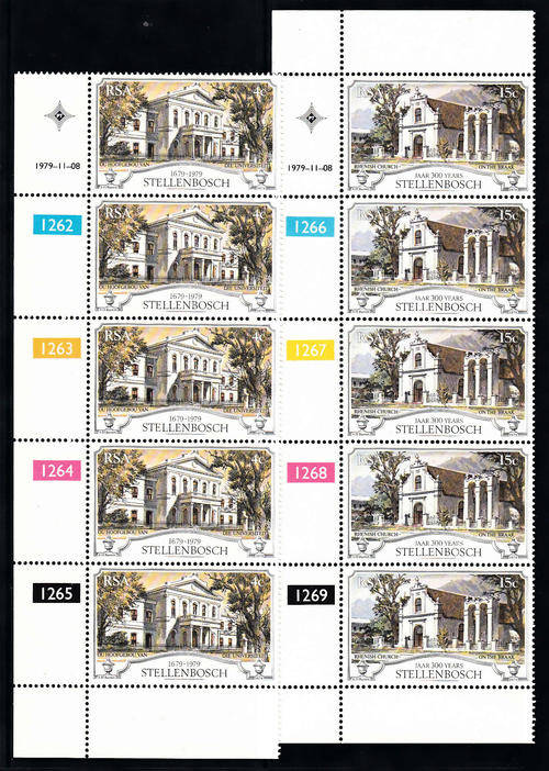 SACC 475-476: 8.11.1979: TERCENTENARY OF STELLENBOSCH SET OF 2 CONTROL STRIPS. U/MINT(**)
