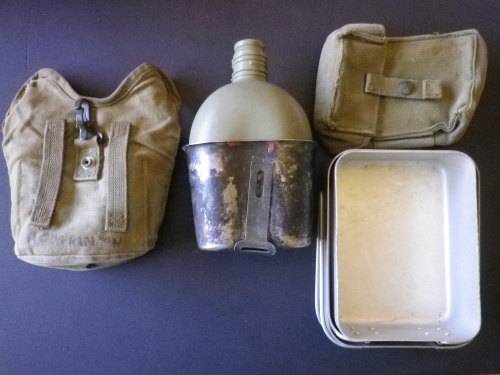 SADF - BORDER WAR PERIOD - MESS TINS + WATER BOTTLE (NO LID) IN BILLY WITH POUCH + AMMO POUCH