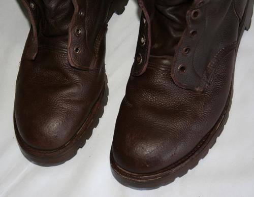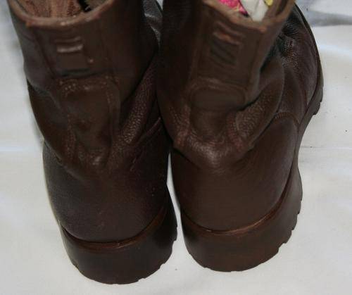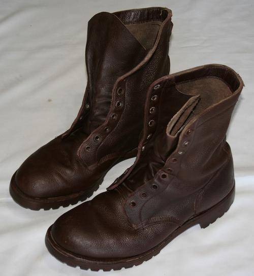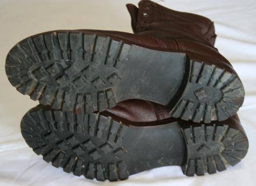SADF BROWN LEATHER BOOTS . TYPE 2 - "CUBE" SOLE PATTERN. VERY GOOD CONDITION . NO LACES. AS USED DURING BUSH WAR.