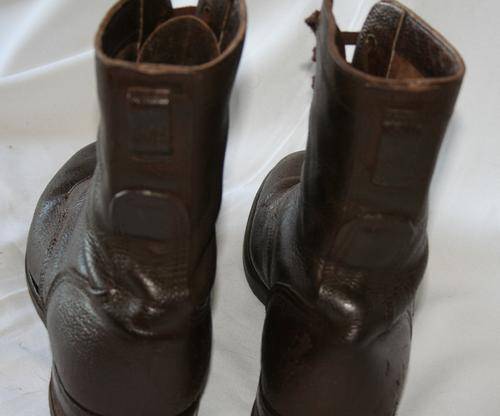 SADF BROWN LEATHER BOOTS . TYPE 1 - SOLE PATTERN. WITH LACES. AS USED DURING BUSH WAR.
