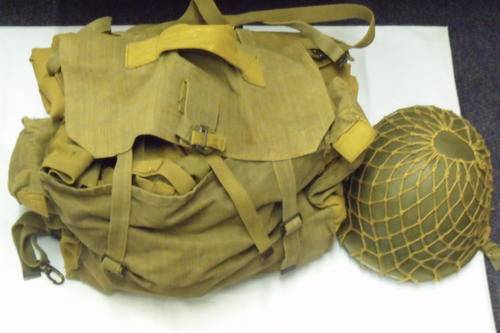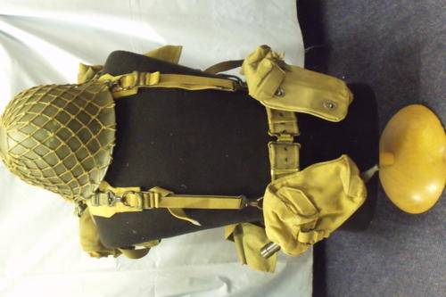 SADF, bush war pattern 63 full webbing set. original and in great condition, includes a staaldak OTAN helmet and R1 bayonet and a waterbottle. as unofficially sent to Rhodesia. and used (often modified) by Rhodesian troops.