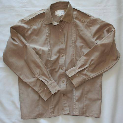 SADF - FEMALE SOLDIER -- OFFICE WEAR STEP-OUT BLOUSE/SHIRT . BUST SIZE: 102cm (40 inch) . LONG SLEEVE TYPE (WINTER) . GOOD CONDITION . BUSH WAR ERA. Hard to get item.