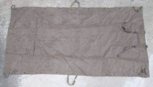 SADF issued Nutria groundsheet carried with Patt 73 webbing and used by National Servicemen throughout the Border War. Also used as a stretcher. Label intact MARBURG MNFRS 1978. Good original field-used condition, includes all 6 canvas handles, clips and straps. No holes. Size is 1.8 meters x 0.89. Tracked postage is R45.00.