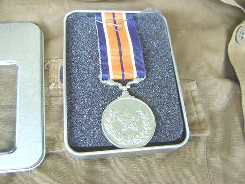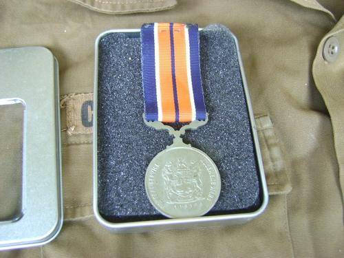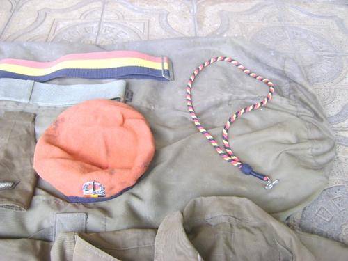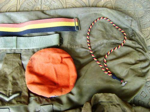 SADF MILITARY POLICE KIT LOT, BAG, BELTS, BERET, RANK, SERVICE MEDAL, LANYARD, MED JACKET
