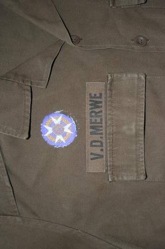 This one belonged to a chaplain/padre/dominee/reverand . It has the Chaplains Corps cloth badge on the chest as well as a "van der Merwe" surname tag. These are easily removable.