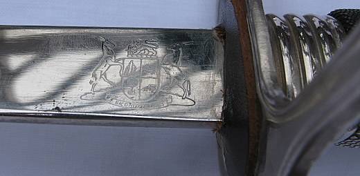 SADF PERIOD ARMY OFFICERS CEREMONIAL SWORD - SORD & SCABBARD WITH MATCHING NO'S. OLD COAT OF ARMS AND MADE BY WKC SOLINGEN GERMANY - SWORD & SCABBARD IN A VERY GOOD CONDITION