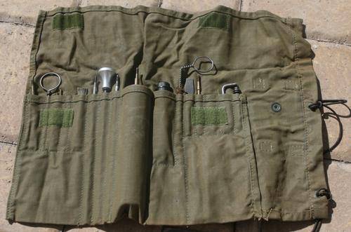 This is the original issue R4 rifle cleaning kit, issued to the SADF in Angola and elsewhere. This rifle cleaning kit is complete and contains the following :