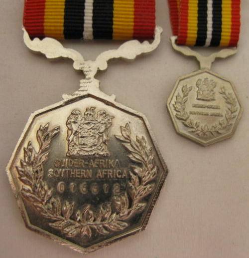 SADF SOUTHERN AFRICA MEDAL FULL SIZE (NUMBERED 016612) & MINIATURE. ORIGINAL