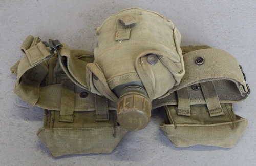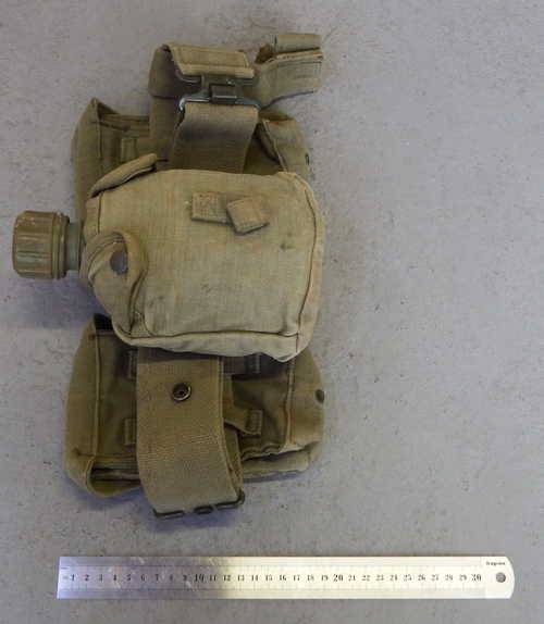 SADF webbing belt with water bottle, 2 ammo pouches and bayonet frog
