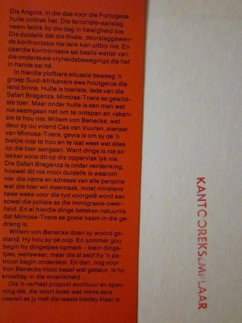 eerste uitgawe 1977 hardeband met stofomslag 128 bladsye, die stofomslag het enkele klein merkies aan, hardeband in goeie toestand , voor in boek en teen die kant van die bladsye - maw as jy die boek toe hou - is daar "kantooreksemplaar" gestempel,die bladsye is liggies vergeel teen die rande as gevolg van ouderdom, die teks is skoon en die binding goed, versending R30 in RSA - geen oorsese versending