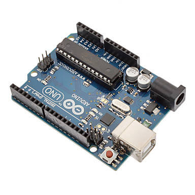 The Arduino Uno is a microcontroller board based on the ATmega328 (datasheet). It has 14 digital input/output pins (of which 6 can be used as PWM outputs), 6 analog inputs, a 16 MHz crystal oscillator, a USB connection, a power jack, an ICSP header, and a reset button. It contains everything needed to support the microcontroller; simply connect it to a computer with a USB cable or power it with a AC-to-DC adapter or battery to get started.