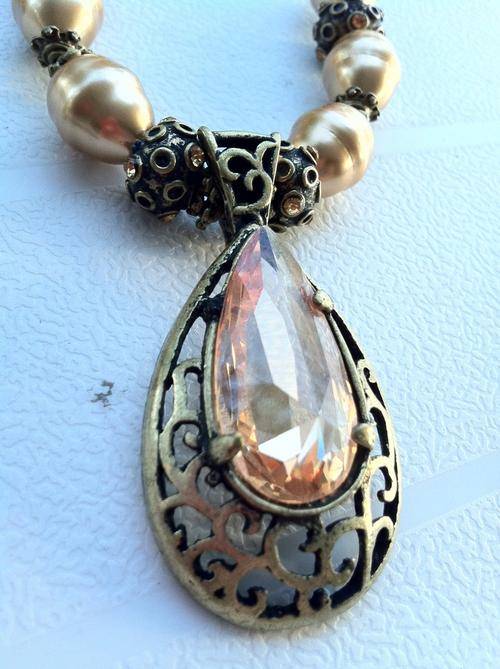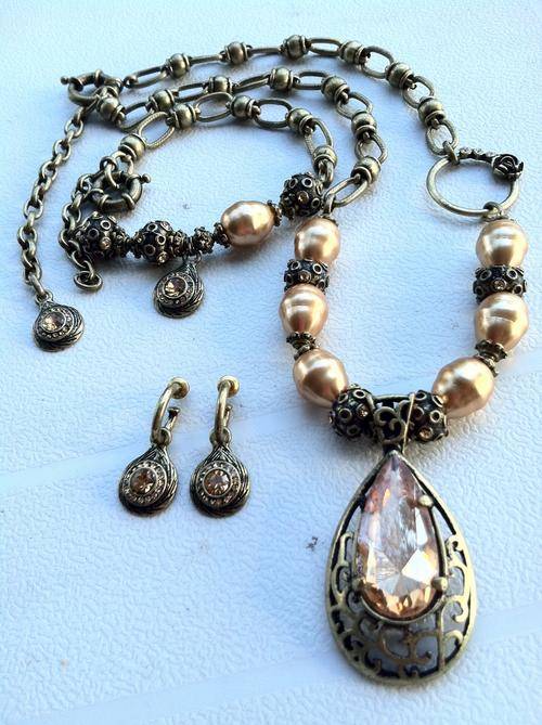 SALE!!HILDAT HANDMADE COLLECTION!! GENUINE GOLDEN SWAROVSKI PEARL,COPPER PENDANT 3 PIECE SET