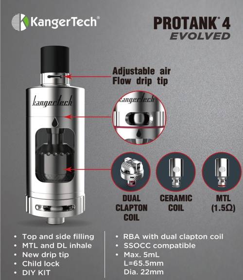 The Kangertech Protank 4 vape is one of the new tanks from Kanger .