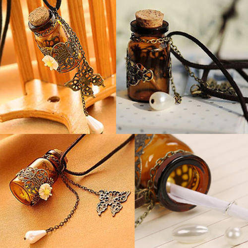 SALE MADNESS!!! Message Bottle Flower Butterfly Pendant Leather Necklace