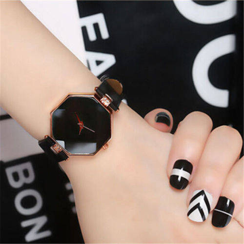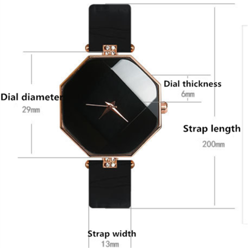 WATCH WITH DIAMANTE DETAIL AND BLACK FAUX LEATHER BAND