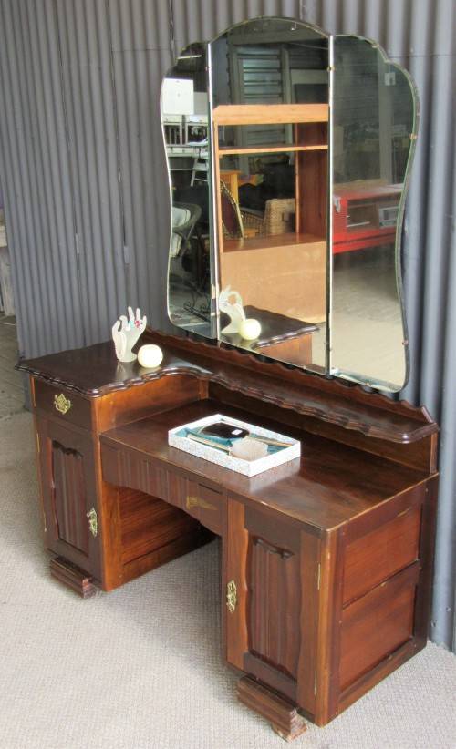 A GORGEOUS VINTAGE DRESSING TABLE - WITH SO MUCH DETAL & WITH THREE MIRRORS -FURNINTURE MADE TO LAST