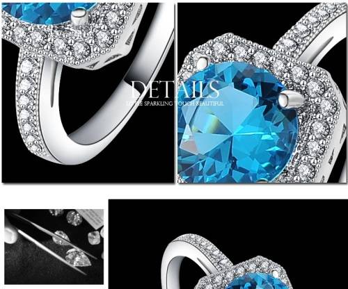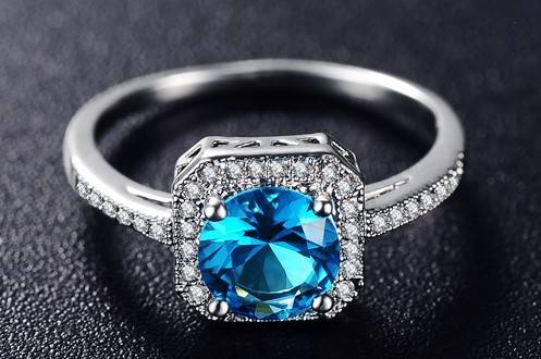Sale!!Stunning Platinum Plated Inlayed Blue Sapphire Square Engagement Rings Bijoux - Size 7