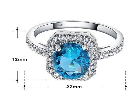 Stunning Platinum Plated Inlayed Blue Sapphire Square Engagement Rings Bijoux - Size 7