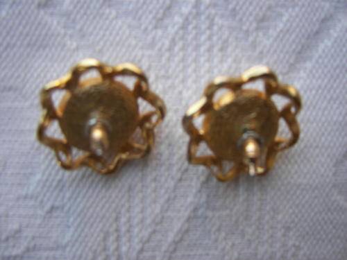 SALE!!!VINTAGE GOLD TONE FAUX PEARL PIERCED EARINGS