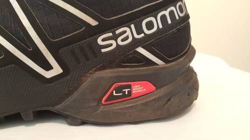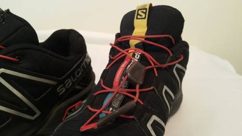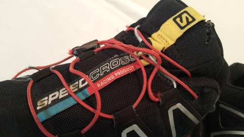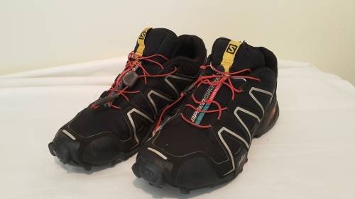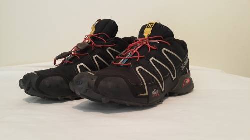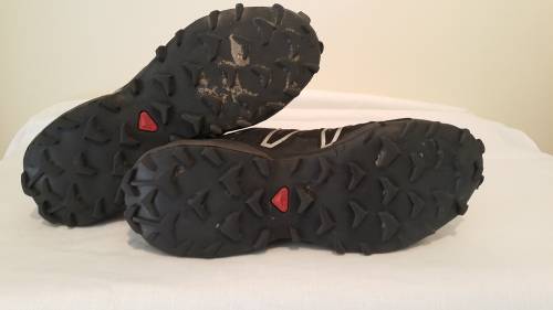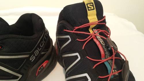 A BLACK AND RED PAIR OF SALOMON SHOES!!!