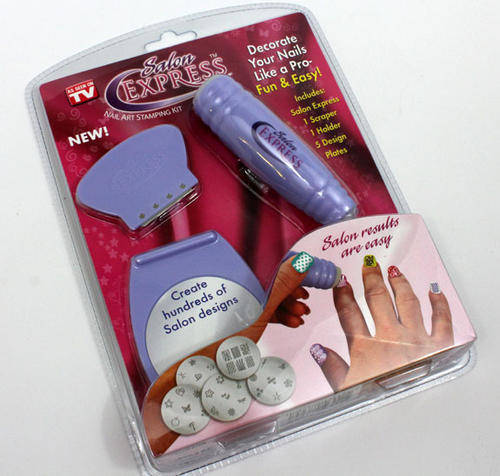 Each kit includes: 1 scraper, 1 stamper, 1 holder, 5 design plates (each with 6-7 designs) and instruction guide