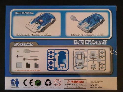 Environmentally safe, non-toxic and clean. The Salt Water Fuel Cell Car Kit is the smallest, cheapest and the first car to be powered by saltwater. The Salt Water Fuel Cell Car gives children a chance to learn about new forms of clean energy, while building and powering their very own toy: Just add saltwater and go! Surprisingly quick little car! We built this car here at the office and were just amazed! This is applied science learning at its very best.