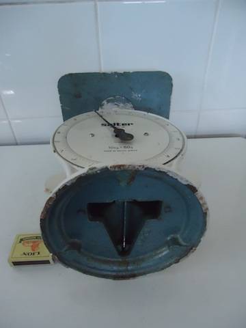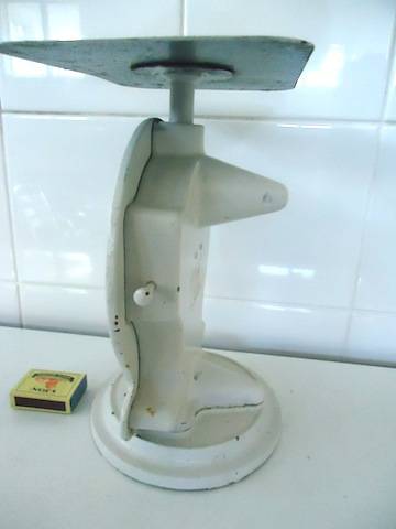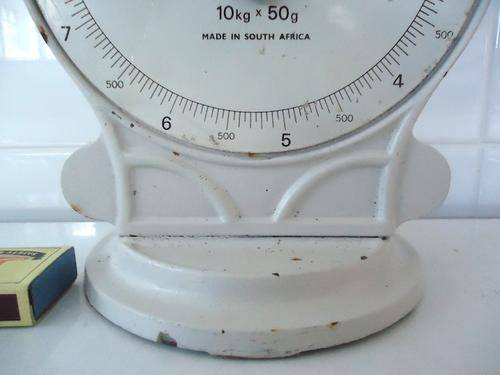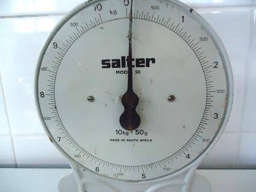 Salter Metal Scale Model 50 - Stamped K 1640 on Base (see picture), 10k x 50g measuring dial, made in SA, measuring 27cm Height, 20.5cm x 15.5cm top, 19cm across measurement face, 16cm Diameter Base, damage to tip of indicator. Sooooo very collectible. Very heavy.