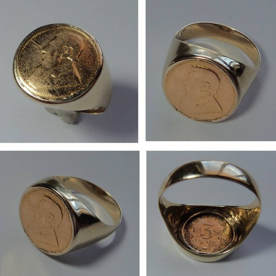 The Tickey was struck in 22ct gold and the ring in 9ct gold.