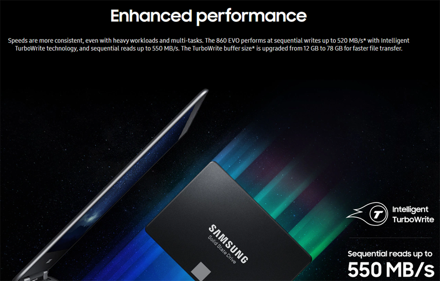 The SSD to trust The newest edition to the worlds best-selling* SATA SSD series, the Samsung 860 EVO. Specially designed for mainstream PCs and laptops, with the latest V-NAND and a robust algorithm-based controller, this fast and reliable SSD comes in a wide range of compatible form factors and capacities.