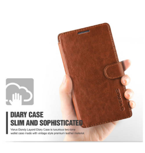 Samsung Galaxy Note 4 Premium Vintage Leather Wallet Case By Verus | Brown | INSTOCK