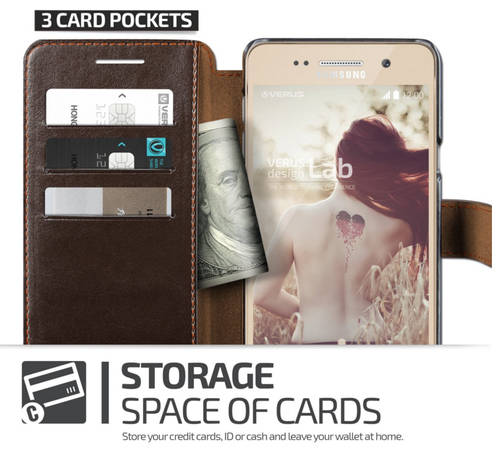 SAMSUNG GALAXY NOTE 5 PREMIUM VINTAGE WALLET FLIP CASE COFFEE BROWN | VERUS | INSTOCK