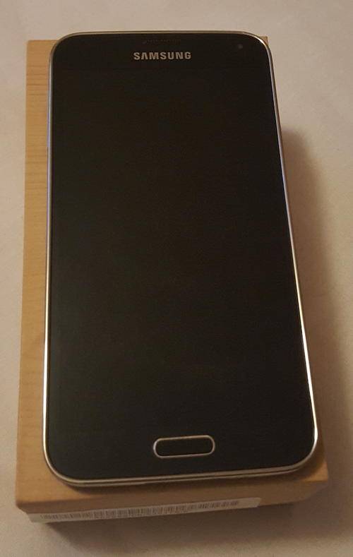 Secondhand Samsung Galaxy S5 in good condition. 16GB of internal storage. Updated to latest Android 5.0 (Lollipop). Original packaging with charging adapter and cable included (no earphones). Charging port cover missing.