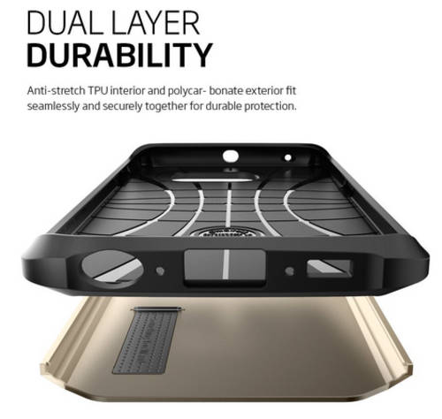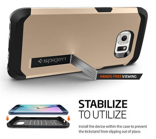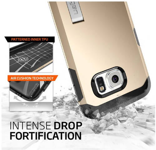 We're pushing the boundaries with our Tough Armor for the Samsung Galaxy S6 Edge. The perfect combination of a TPU layer contained in a hard polycarbonate backing is reinforced with Air Cushion Technology for intense fortification that absorbs shock from bumps and falls without the bulk. In order to ensure protection of the screen's edges, a 1.5mm lip wraps neatly around the device for additional grip and a secure buffer against flat surfaces without interfering with the edges' screens.