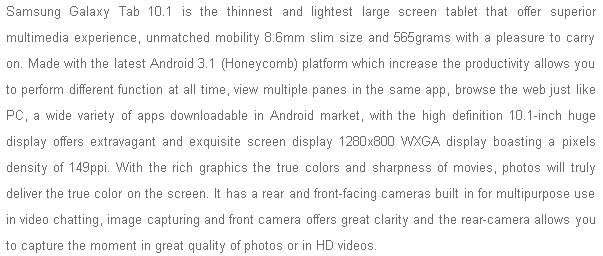 SAMSUNG GALAXY TAB 10.1" P7500 3G 32G Brand new sealed