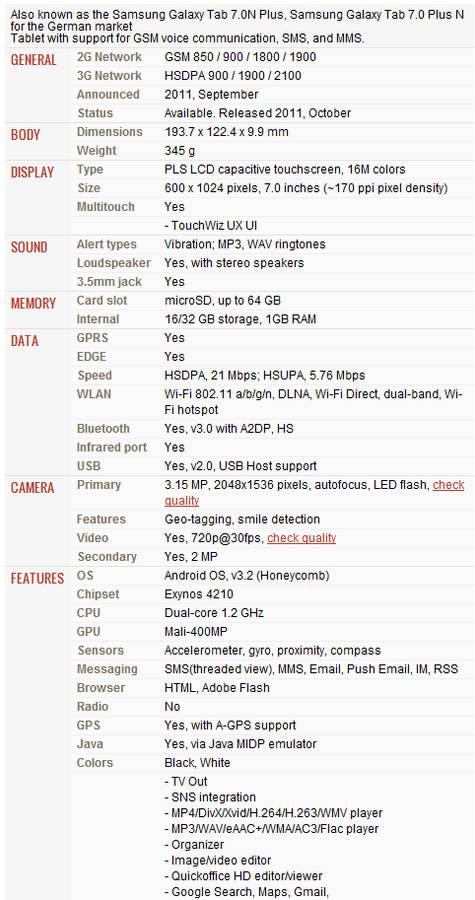 Samsung P6200 Galaxy Tab 7.0 Plus - Free Shipping