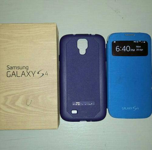 Samsung S4 with 32GB hdd comes with box all booklets with usb cable and adapter has a flip cover on also has a\ body glove cover. Phone is still neat and good condition. Dont miss out. Payment must please be made in 24hours to keep people away from playing around.