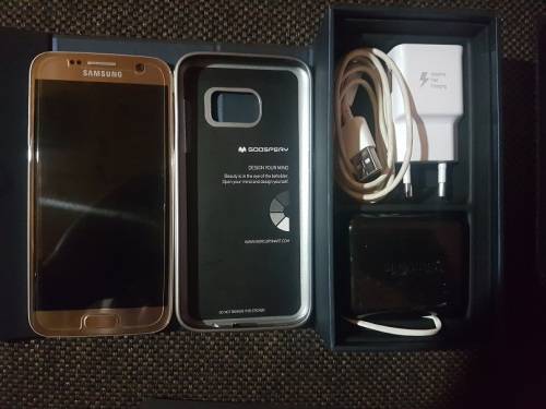Samsung S7 32GB Boxed Gold + Fast Charger + Cover + Tempered Glass - excellent condition