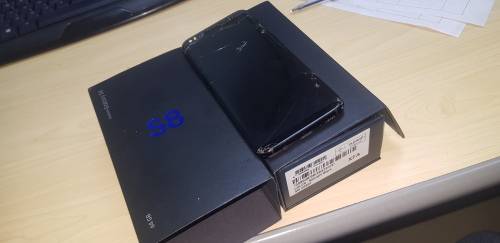 Comes with box and charger the glass of the screen is cracked and chip off at top however phone is working 100%.