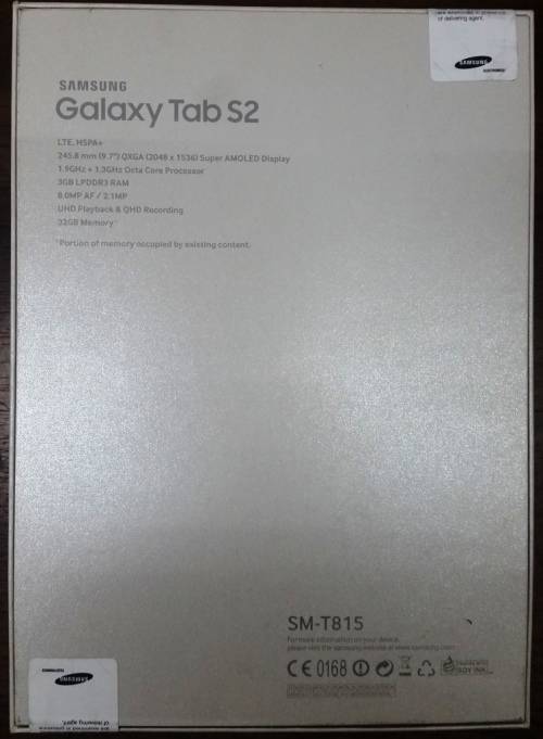 Samsung Galaxy Tab S 2, 9.7 QXGA [2048 x 1536], Octacore (Quad 1.9GHz + Quad 1.3GHz) [Exynos 5433], 3GB (RAM) + 32GB Internal Memory, MicroSD up to 128GB, Rear 8MP, BT, LTE + Wi-Fi, Android 5.0 (Lollipop), White