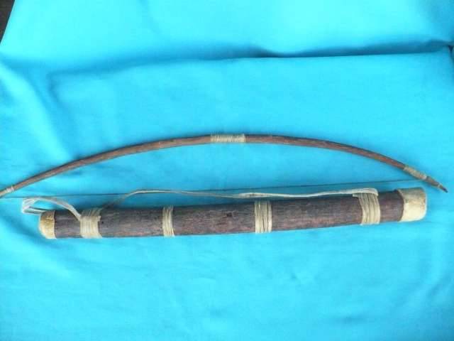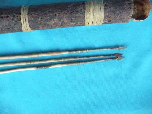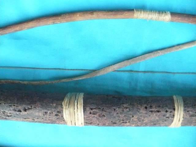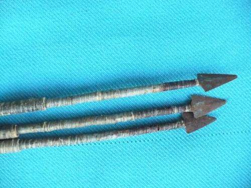 BOW TIP TO TIP 660 MM BOW STRING SIMPLE TWINE ARROWS MADE OF REED & HAND BEATEN METAL POINT