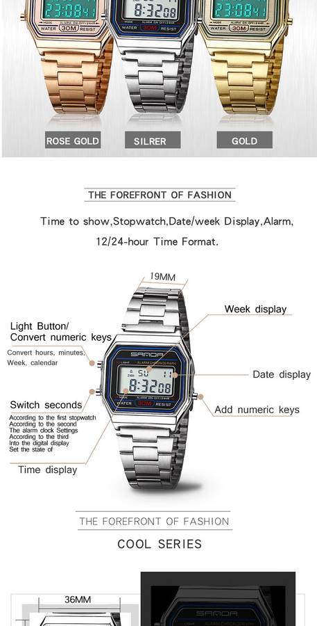 | Features: | Time Display, Date Display, Week Display, Stopwatch, Alarm |